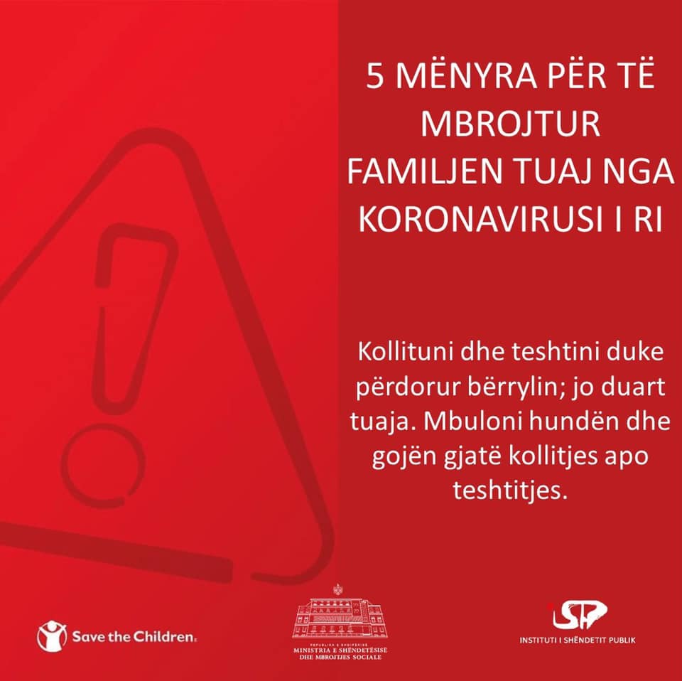 Instituti i Shëndetit Publik ka përsëritur sot pesë mënyra për të mbrojtur familjen tuaj nga koronavirusi i ri.