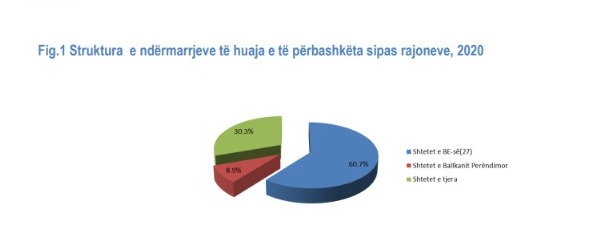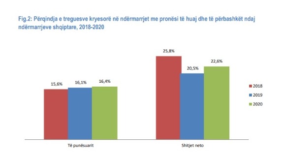 Në vitin 2020, ndërmarrjet e huaja dhe të përbashkëta kanë realizuar 16.4 % të punësimit gjithsej dhe 22.6 % të shitjeve neto, që kanë rezultuar më rritje nga viti 2019, por kanë ulur atë shqiptar.