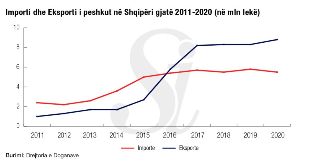 Por pas  2015-ës, situata është përmbysur. Shqipëria nis të ekportojë në vlerë më shumë dhe bilanci filon të shndërrohet pozitiv. Për ccdo periudhë, këto pesë vitet e fundit, shqipëria ka nisur të akumulojë të ardhura neto nga tregtia e peshkimit mes 0.4 mld lekë që ishte diferenca mes importit dhe eksportit në 2016-ën në 3.3 miliardë lekë në 2020 duke qenë viti më i mirë edhe pse vit pandemik.