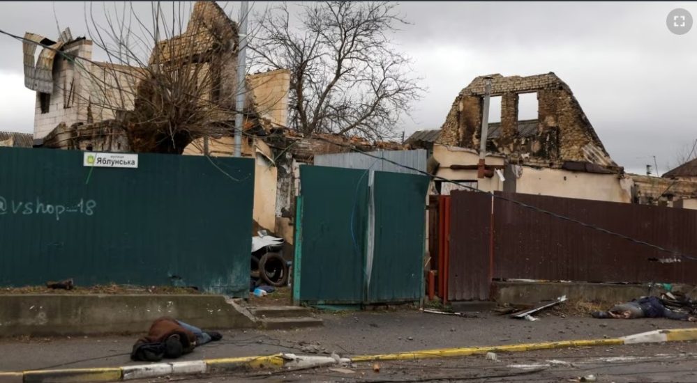 Filkina vdiq në rrugën Yablunska, një rrugë e gjatë, tashmë famëkeqe, në preriferi të Buçës, ku trupat e tjerë të civilëve të vrarë, disa me duar të lidhura pas shpine, ishin lënë pa u varrosur. Kryebashkiaku i Buçës tha se 400 civilë u vranë nga forcat ruse.