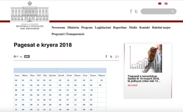Në një përpjekje për të qenë transparente, Shqipëria dërgon transaksione të përditshme financiare nga qeveria në faqen e saj të internetit (Ministria e Financave e Shqipërisë)