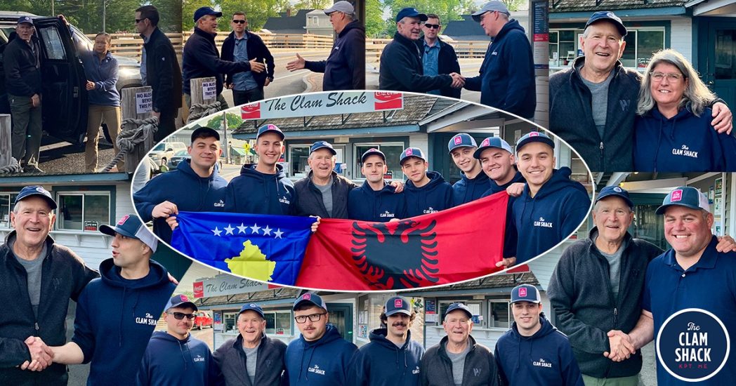 Studentët nga Shqipëria dhe Kosova që po punojnë gjatë verës në Shtetet e Bashkuara të Amerikës, kanë marrë një surprizë të veçantë kur ish-Presidenti i SHBA-së, George W. Bush, u bëri një vizitë së fundmi! Presidenti Bush u ndal në një nga restorantet e tij të preferuar, The Clam Shack në Kennebunk, Maine, ku studentët po punojnë si pjesë e programit të punës verore dhe udhëtimit të Departamentit të Shtetit.