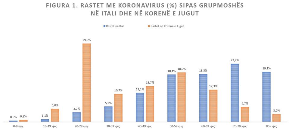 ? Në Figurën nr. 1 shihet menjëherë që ka një dallim të qartë në moshat e prekura ndërmjet Italisë dhe Koresë së Jugut. Në Itali, shumica dërrmuese e rasteve janë mosha më të vjetra dhe si rrjedhojë peshojnë më shumë mbi sistemet shëndetësore spitalore duke u shoqëruar edhe me vdekshmëri më të lartë. Si rrjedhojë, vdekshmëria e rasteve nuk mund të krahasohet ndërmjet këtyre dy vende për vetë natyrën e moshave të ndryshme të prekura.