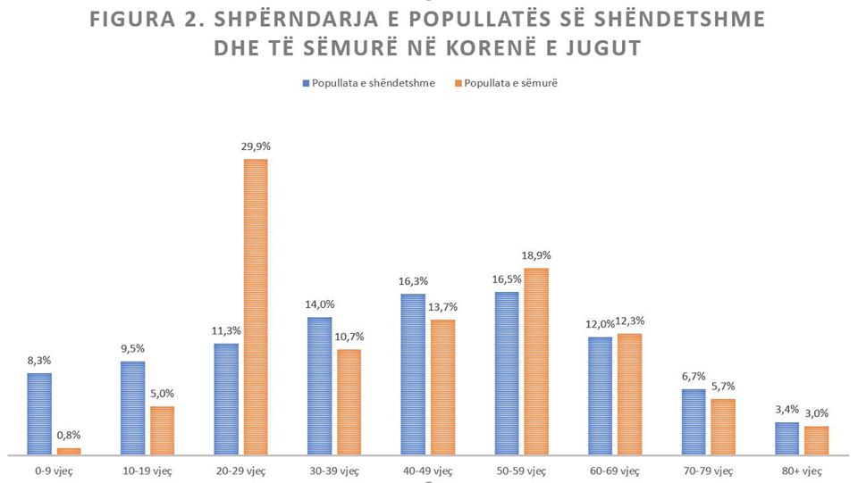 ? Siç duket qartë, në Korenë e Jugut (Figura nr. 2) modeli i shpërndarjes së sëmundshmërisë ndjek në mënyrë harmonike modelin e moshës së popullatës së përgjithshme.