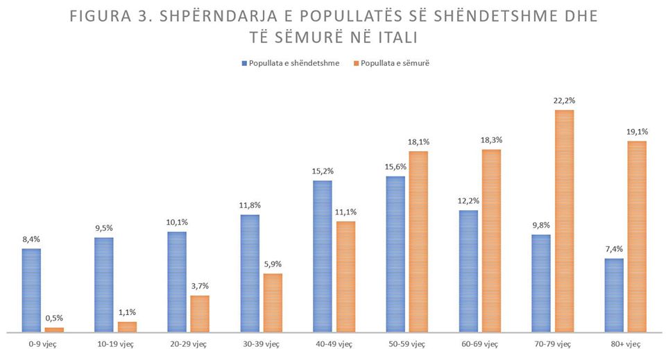 Ndërkohë, në Itali (Figura nr. 3) këto dy modele nuk janë aspak harmonike, me prevalencë të qartë më të lartë në moshën më të lartë.