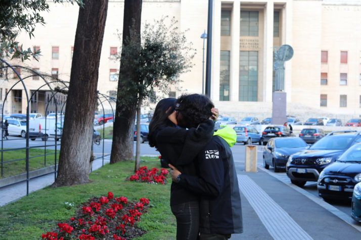 Dy studentë puthen me njëri-tjetrin në kampusin universitar La Sapienza, Gazeta Si, 2020