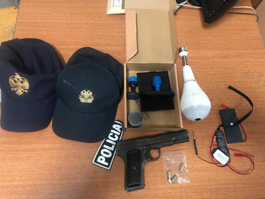 Siç njofton policia, pas kontrollit të ushtruar në banesën e tij, iu gjetën dhe sekuestruan në cilësinë e provës materiale një armë zjarri tip “TT”, disa fishekë, si dhe 2 kapele me mbishkrimin policia.