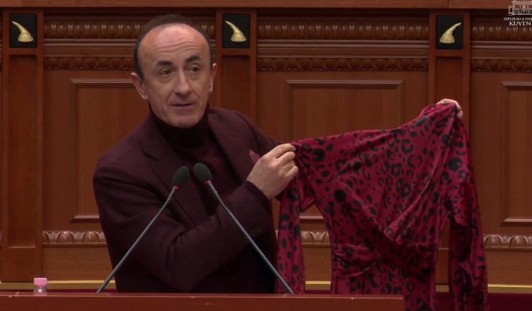 Nga Gazeta ‘Si’- Deputeti demokrat Dashnor Sula, gjatë seancës së sotme plenare ka marrë një fustan dhe ka komentuar akuzat që SPAK ka bërë ndaj bashkëshortes së kryebashkiakut Erion Veliaj, për blerje online mbi 800 mijë euro.