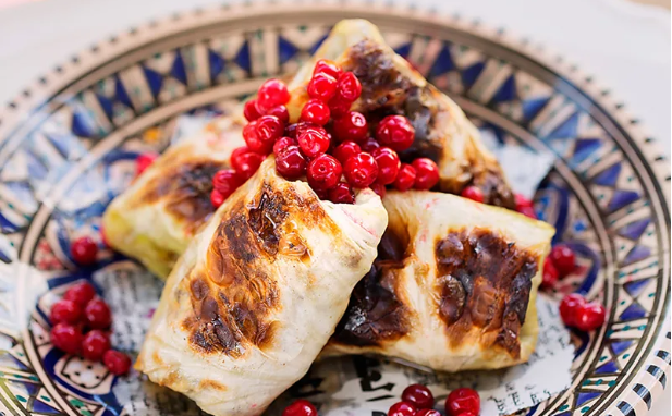 “Mbushja e perimeve nuk ishte asgjë e re; njerëzit e kishin bërë këtë për shekuj me radhë. Por midis shekujve të 15-të dhe të 19-të, gjithçka, nga qengji, shpendët e gjahut dhe deri te qepët, mollët dhe gjethet e hardhisë, mbushej. Kjo i dha jetë një game të jashtëzakonshme pjatash me japrak.”