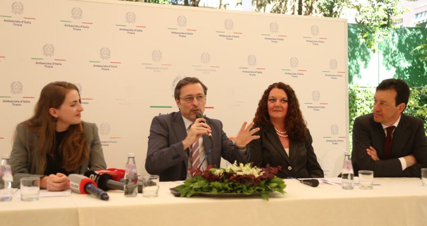 Ambasadori italian, Marco Alberti, në praninë e Zv Ministres së Ekonomisë, Kulturës dhe Inovacionit, Lira Pipa, drejtoreshës së ICE Tirana, Francesca Mondello dhe drejtorit të Institutit Italian të Kulturës , Alessandro Ruggera, prezantoi programin e bazuar në tre koncepte, E ardhmja, Bashkëpunimi dhe Ndërveprimi.