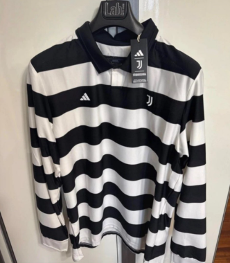 Fanella vjen në pambuk premium, e përfunduar me një jakë polo. Duke përzier frymëzime nga e kaluara dhe e tashmja, fanella i bën homazh fanellave me mëngë të gjata të ngulitura në kulturën e futbollit, duke mbetur besnike ndaj paletës ‘bianconero’.