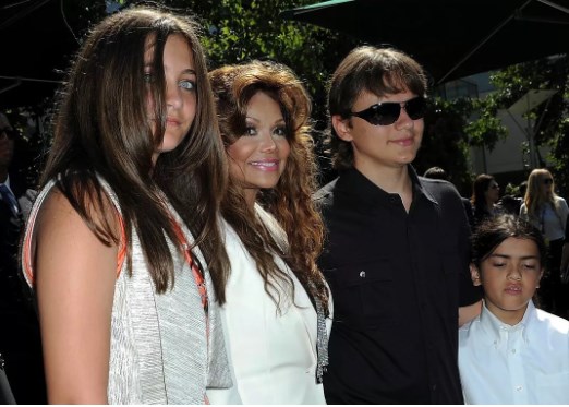 Motra La Toya (e dyta nga e majta) me fëmijët e Michael Jackson, Paris, Prince dhe Blanket