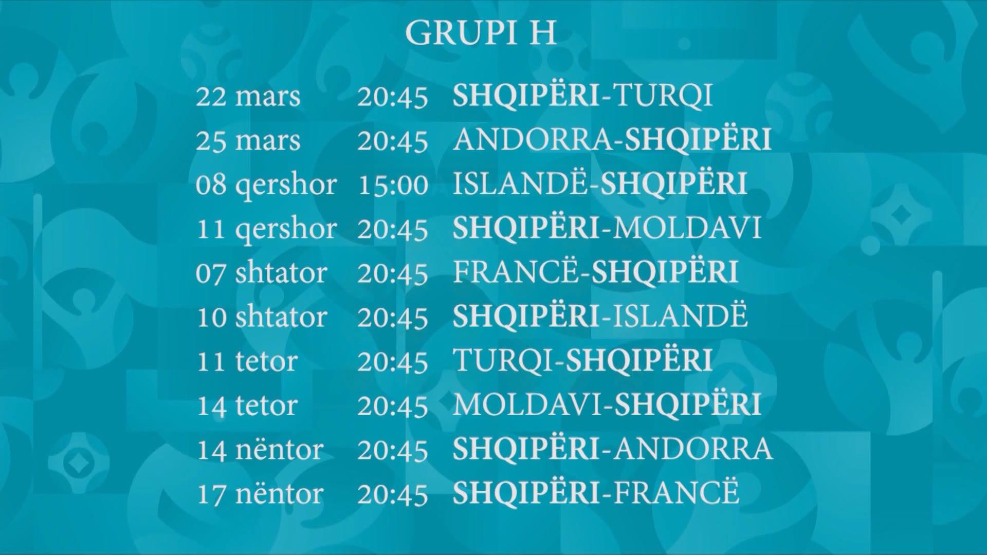 Federata Shqiptare e Futbollit ka bërë të ditur kalendarin e ndeshjeve kualifikuese drejt Euro 2020. Kuqezinjtë bëjnë pjesë në Grupin H, bashkë me Francën, Turqinë, Islandën, Moldavinë dhe Andorrën. Kuqezinjtë e trajnerit Kristian Panuçi e nisin rrugëtimin e vështirë me një ndeshje në shtëpi, me Turqinë. Kjo ndeshje, që do të luhet më 22 mars të vitit të ardhshëm, ka një rëndësi të veçantë, pasi një fillim i mbarë do të ishte shpresëdhënës për kualifikimin e mundshëm.Ndeshja e fundit me Turqinë ishte një miqësore, ku Shqipëria fitoi 2-3, me dy gola të Sadikut dhe një të Grezdës, por kuptohet që në ndeshje zyrtare historia ndryshon.