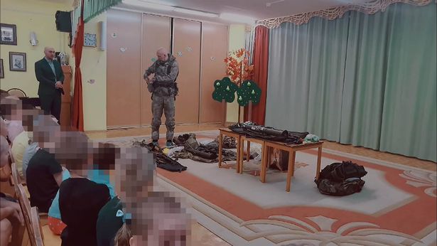 The Mirror ka publikuar pamje nga një kopsht rus pranë Moskës në të cilin oficerët e ushtrisë së Putinit japin mësime lufte për fëmijët e moshave 4 deri në 5 vjeç.