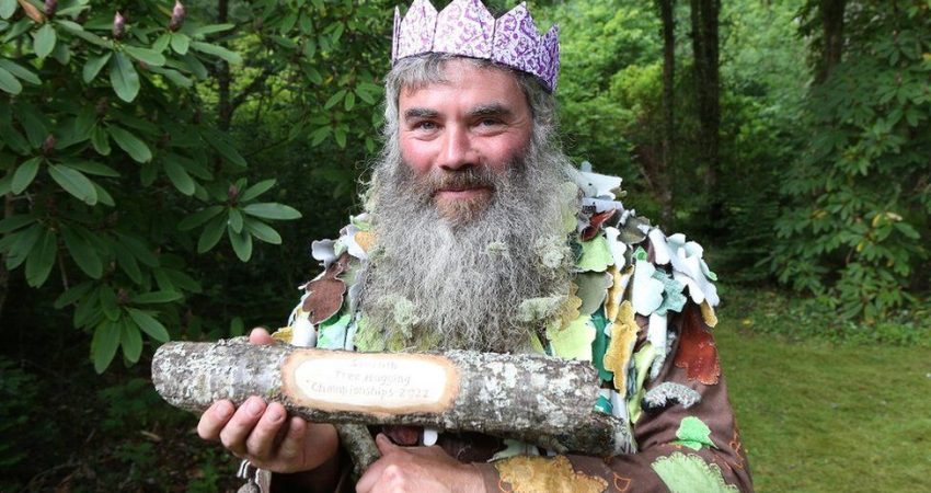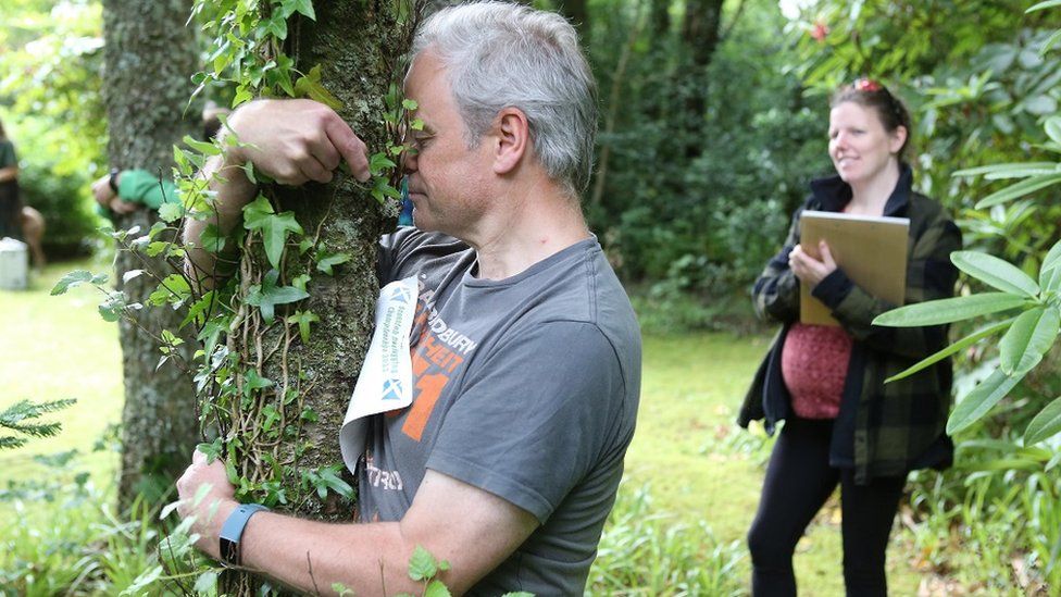Organizatat mjedisore Darach Forest Therapy dhe Darach Social Croft mbajtën veprimtarinë në bashkëpunim me kampionatin vjetor botëror të përqafimit të pemëve në Finlandë. / BBC/