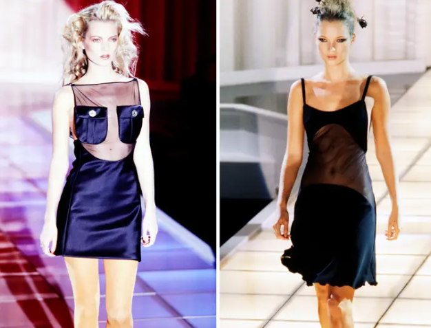 Në dhe jashtë pistës, Moss ka veshur fustane të tejdukshme, bluza rrjetë dhe funde të tejdukshme, një trend që është rikthyer edhe këtë vit por që ka filluar në 1992.