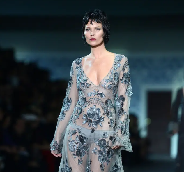 Supermodelja Kate Moss, 48 vjeç, u bë e famshme në vitet 1990 dhe ka qenë ajo që ka sjellë trendin e fustaneve të tejdukshëm.