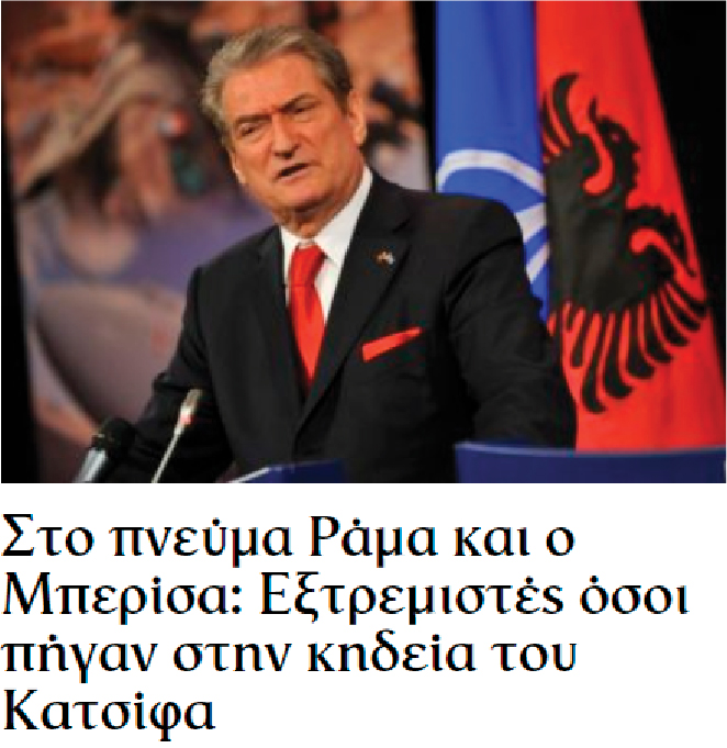 “To Vima”, në dy artikuj të ndryshëm, pasqyron fillimisht deklaratën e Edi Ramës dhe më pas edhe të Sali Berishës. Tek të dyja deklaratat, edhe kjo media greke gjen “provokim” dhe “ofendim” të popullit grek. Por, në asnjë fjalë nuk përmenden koret raciste të Bularatit. Thuajse në mënyrë identike i ka pasqyruar edhe gazeta tjetër, “Ta Nea”, që përcjell edhe reagimin e Giorgos Koumoutsakos, eurodeputet grek dhe anëtar i Demokracisë së Re. Ky i fundit qorton qeverinë e vendit të vet për heshtjen dhe kërkon një koordinim kombëtar për “t’iu përgjigjur agresionit të palës shqiptare”.