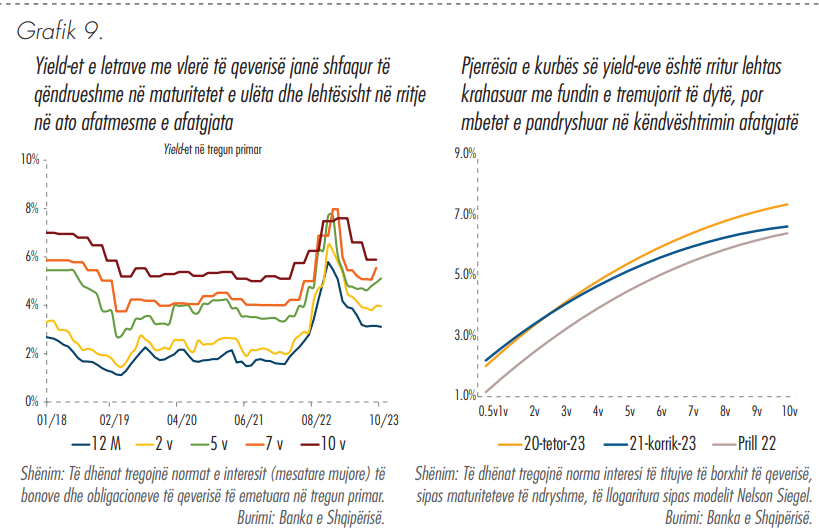 Ecuria e yield-eve ka reflektuar zhvendosjen e strukturës së financimit, nga bonot drejt obligacioneve afatgjata nga ana e qeverisë në muajt e fundit.