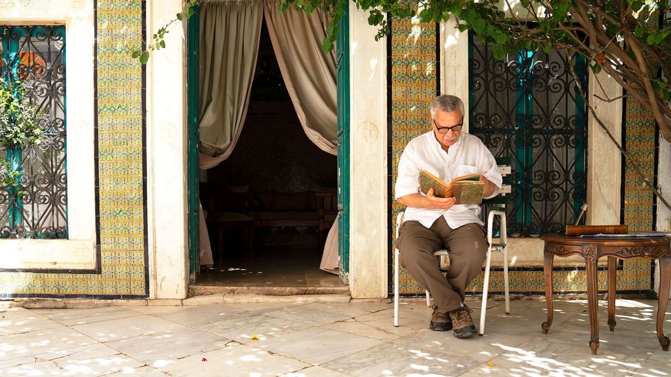 Në oborrin e brendshëm të shtëpisë, ka pllaka të pikturuara me dorë dhe më pas ka lule që të cojnë në laboratorin e tij. Atje, ai dhe studentët nga Universiteti Zitouna në Tunis rivendosin dhe ruajnë me kujdes libra dhe dokumente të dëmtuar.