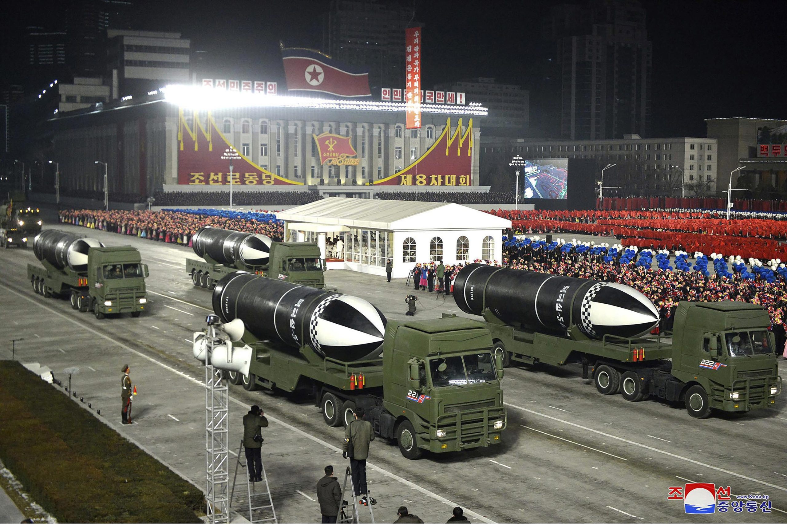 Dhe më pas, i vlerësuar nga turma, u parakalua Hwasong-17, i konsideruar si raketa më e madhe në botë në kategorinë e transportit rrugor (ajo është vendosur në një lëshues me njëmbëdhjetë akse).