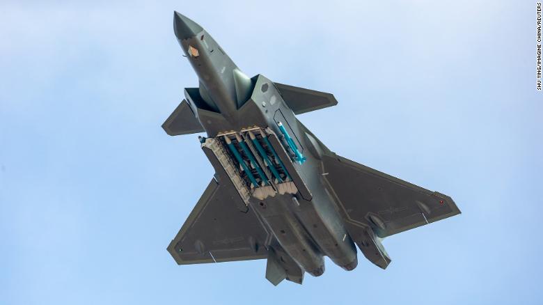 Avioni luftarak stealth i armatosur me raketa të drejtuara J-20 i Forcave Ajrore të Ushtrisë Popullore Çlirimtare Kineze (PLA) performon në Airshoë China 2018.