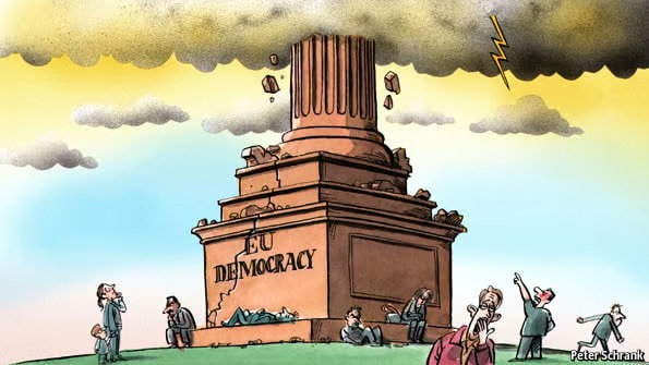 Francezët, për shembull, në vitin 2005 kishin faqe bosh për të votuar ‘Jo’ për Kushtetutën Evropiane me një shumicë prej 55 për qind. Klasa politike e Parisit ishte po aq e turpëruar dhe e zemëruar sa elita e Brukselit – nëse kjo nuk është një oksimoron – dhe marrëveshjet u bënë me dyer të mbyllura.