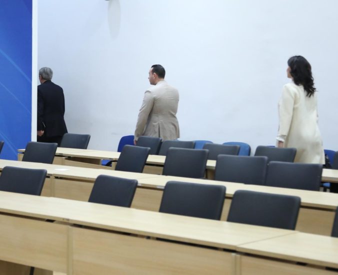 Ndërsa Berisha iu bashkua grupit që ishte duke biseduar në zyrën e Sekretarit të Përgjithshem. Aty ndodhen Belind Këllici, Flamur Noka, Edmond Spaho, Ivi Kaso, Elda Hoti dhe Albana Vokshi. Deputetë dhe përfaqësues të tjerë të Rithemelimit, janë duke pritur jashtë zyrës