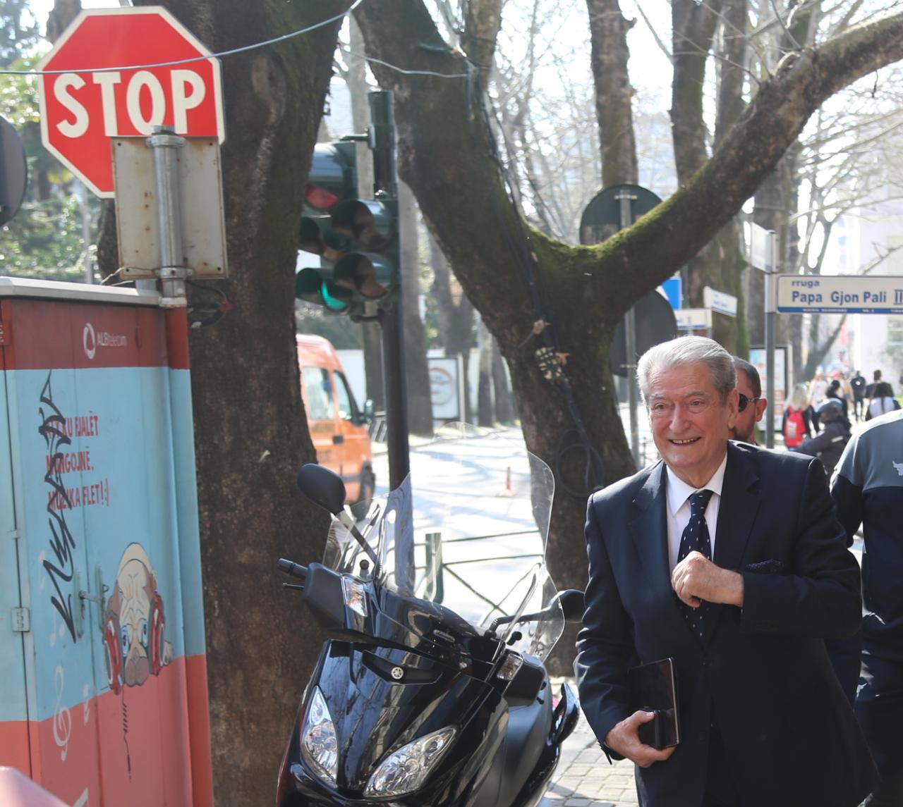 Berisha shkoi i fundit në selinë e PD. Teksa u pyet nëse do i bashkohej takimit që po mbahej, Berisha tha: “Ata janë pjesë e jona!”.