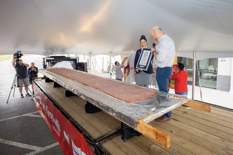 Një kompani mishi në Pensilvani theu një rekord botëror Guinness duke përgatitur një copë proshutë me mish gjel deti me përmasa më shumë se 17 metra të gjatë.