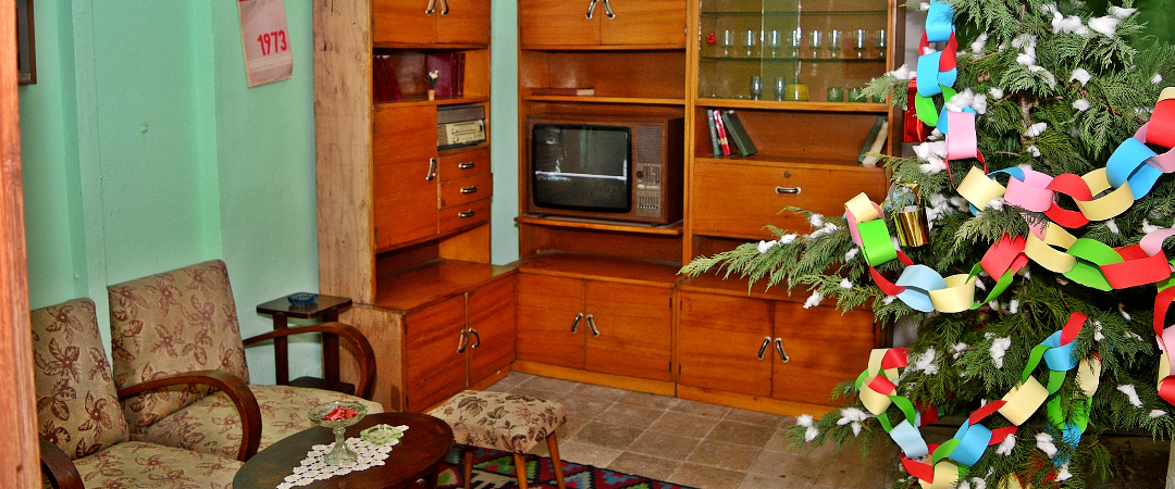 Jemi në dhomën ku pasqyrohet mënyra e arredimit të një kuzhine në periudhën socialiste.
