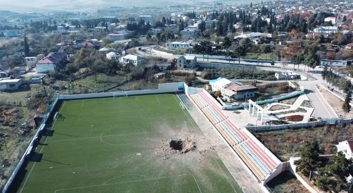 Edhe stadiumi i ri i qytetit të Martunit (Nagorno-Karabakh) nuk i ka shpëtuar bombardimeve.