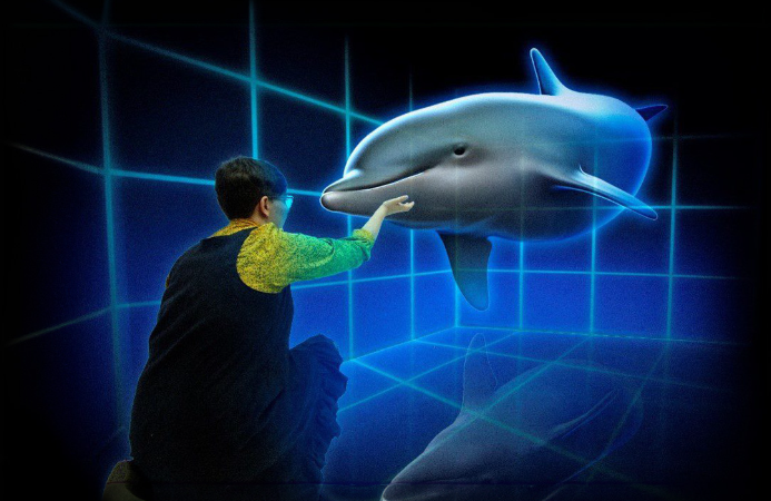 Të gjitha kafshët që mund të shihen në këtë kopsht zoologjik janë holograme, imazhe lëvizëse tredimensionale të krijuara me ndihmën e dritës lazer.
