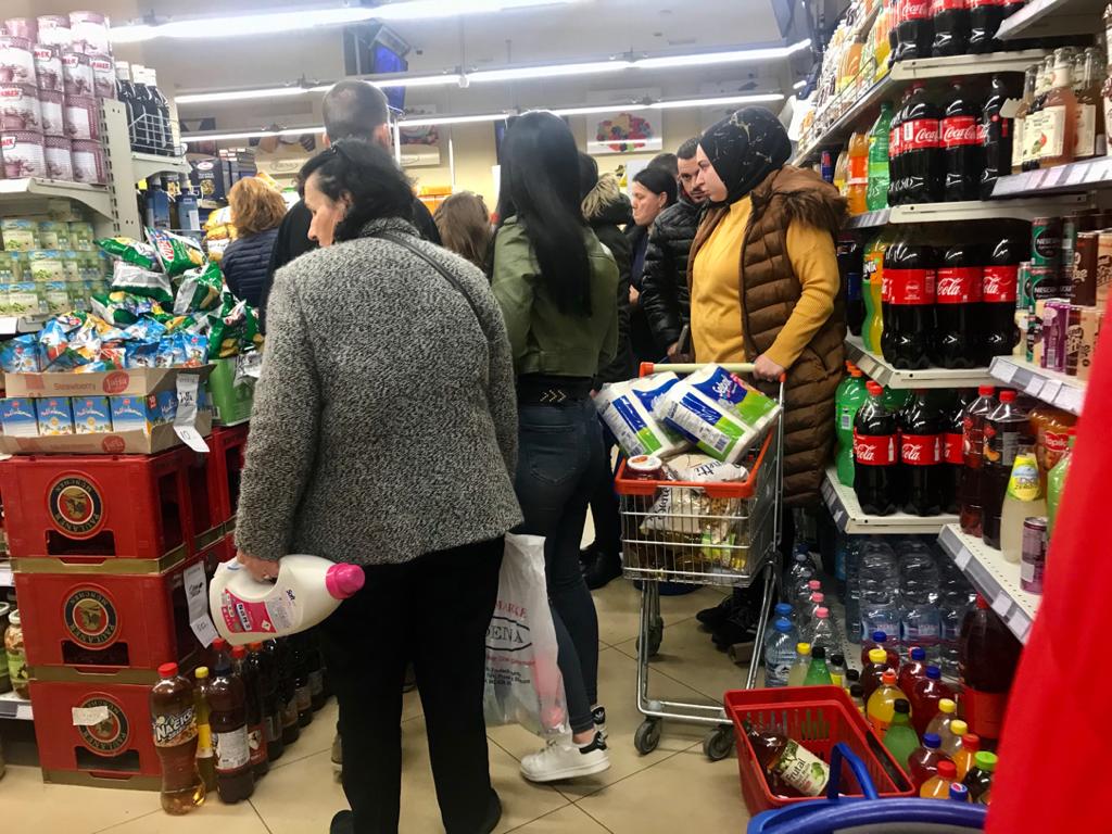 Pasi vendi ynë konfirmoi dy rastet e para nga koronavirusi, lajmi këtë të hënë ka nxitur njerëzit të blejnë më shumë ushqime dhe mallra të tjera se zakonisht. Kjo është vënë re thuajse në çdo supermaket të kryeqytetit por edhe qyteteve të tjera të mëdha të vendit.