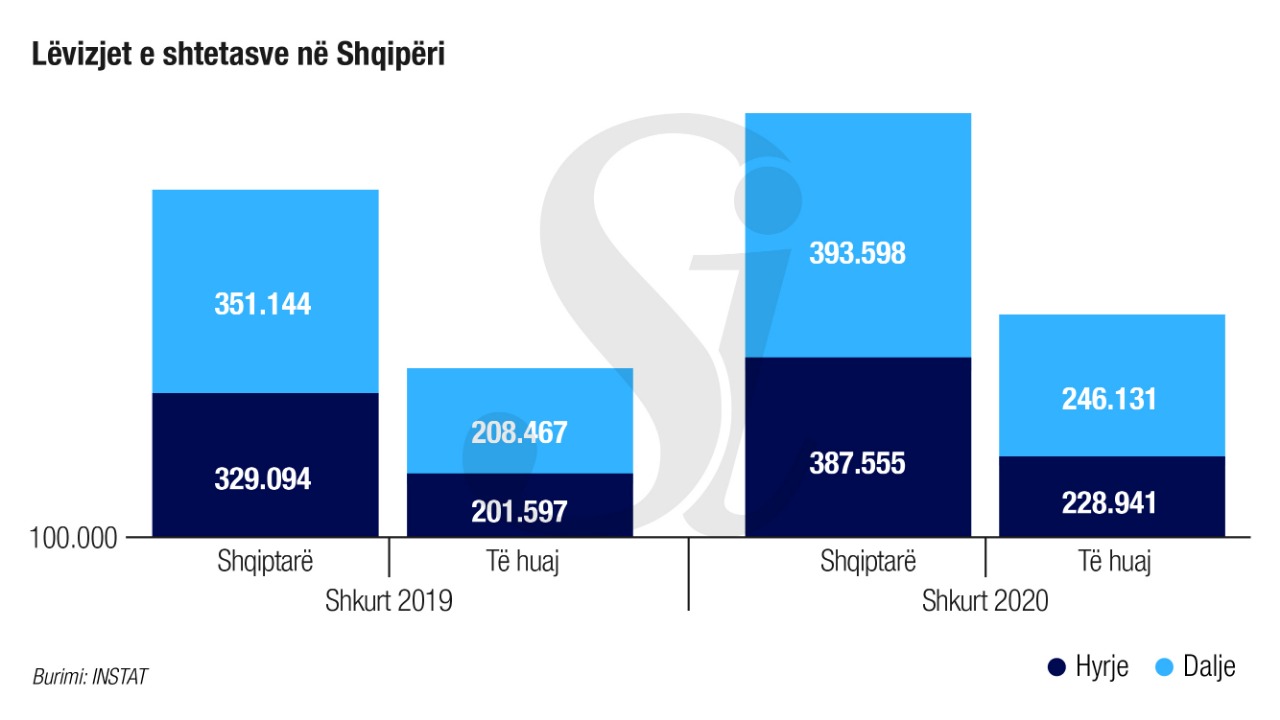 Edhe pse globi ishte në  fillesë  të  kërcënimit nga një  armik i padukshëm dhe tinëzar kur Kina po infektohej në  masë  prej tij në  funddhjetor, të  dhënat e Institutit Shqiptar të  Statistikave tregojnë  se gjatë  dy muajve të  parë  të  vitit, si të  huajt, ashtu edhe shqiptarët nuk janë  tutur se cfarë  po ndodhte në  Azinë  e largët, por kanë  lëvizur sa kanë  dashur nga Shqipëria dhe drejt saj.