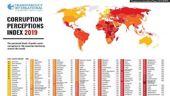 Organizata ndërkombëtare Transparency International publikon raportin mbi Indeksin e Perceptimit të Korrupsionit për vitin 2019, i cili vlerëson se mbi dy të tretat e vendeve janë në stanjacion ose duke shënuar hapa prapa në përpjekjet antikorrupsion. Raporti që përfshinë 180 vende të botës përdor një shkallë prej zero pikësh deri në 100, ku me zero tregon për një vend shumë të korruptuar.