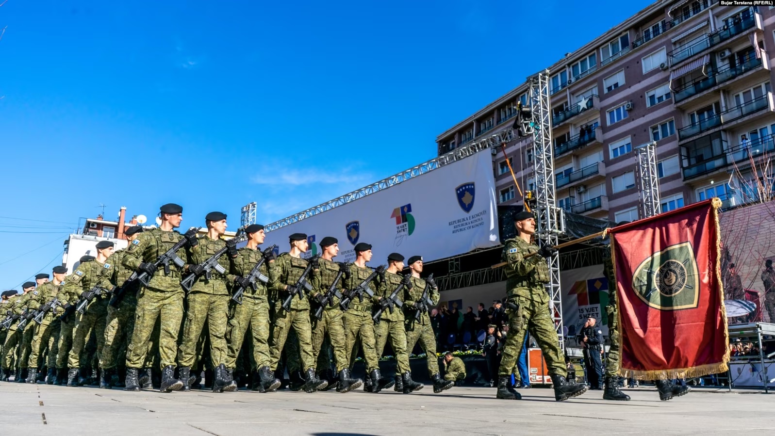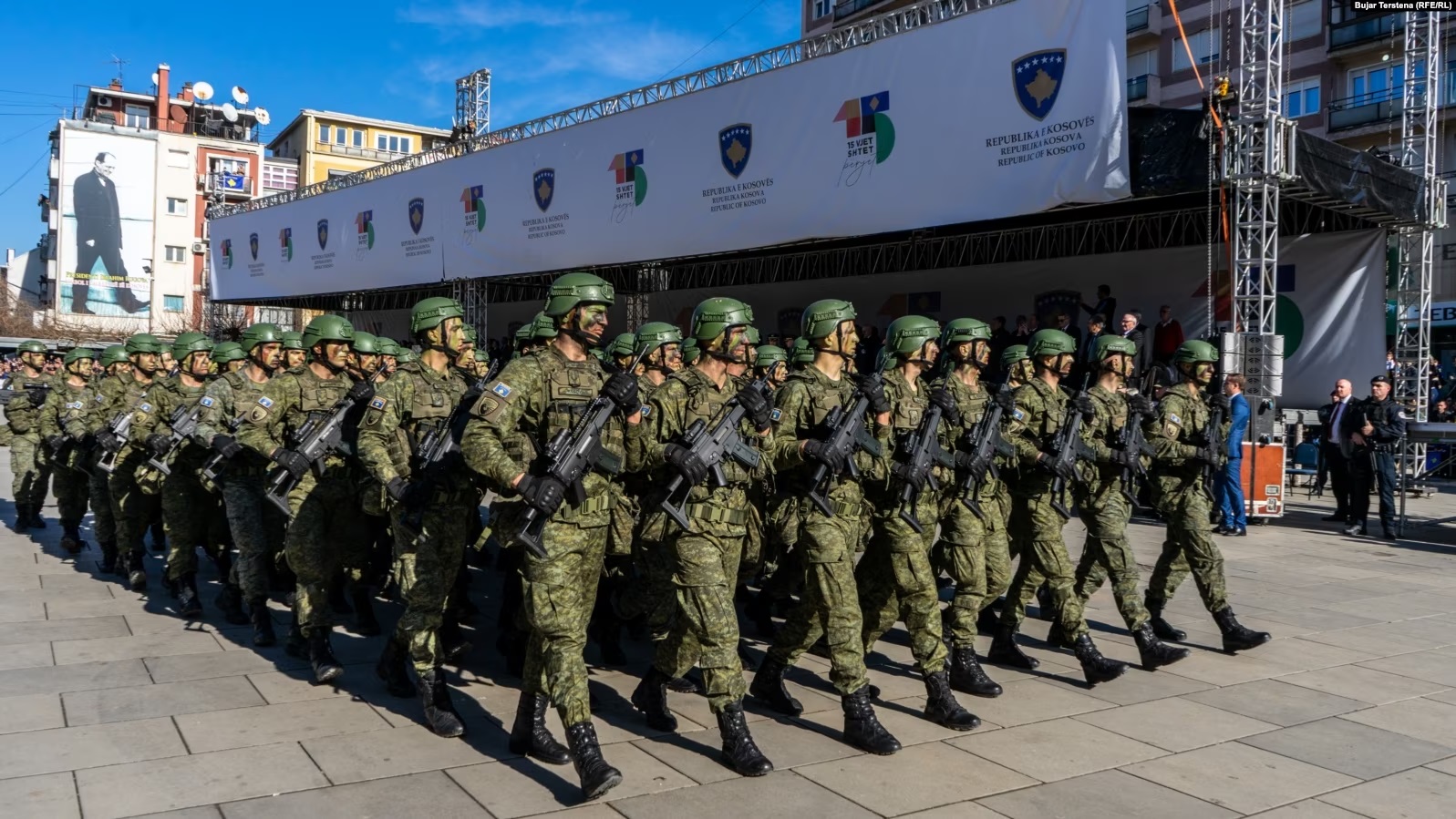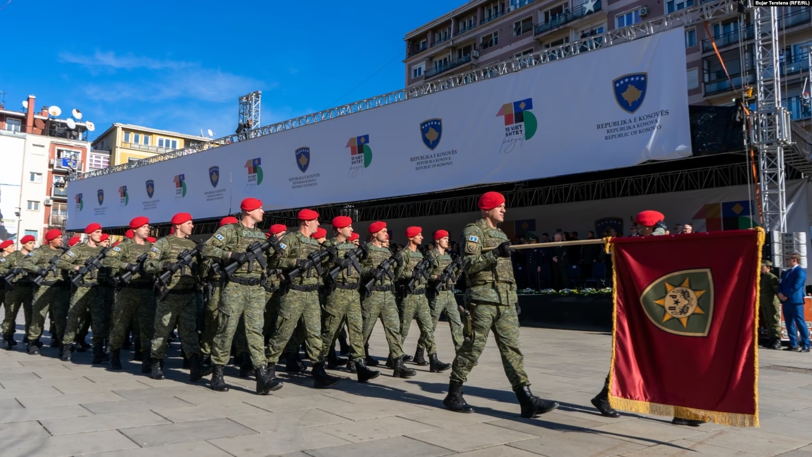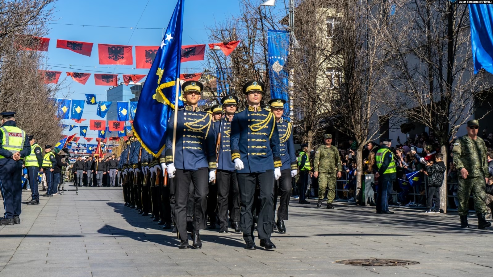 Pjesëtarë të Forcës së Sigurisë së Kosovës dhe të Policisë së Kosovës kanë parakaluar në sheshet e Prishtinës, në shënimin e 15-vjetorit të shpalljes së pavarësisë së Kosovës.