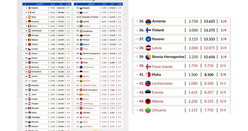 Nga Gazeta Si – Po flasim për klasifikimin e kampionateve në zonën UEFA për muaj Tetor 2025.