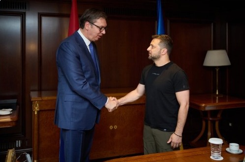 Gjatë vizitës në Athinë, presidenti Zelensky është takuar me homologun, Aleksandar Vuçiç, në një takim të kërkuar prej tij.