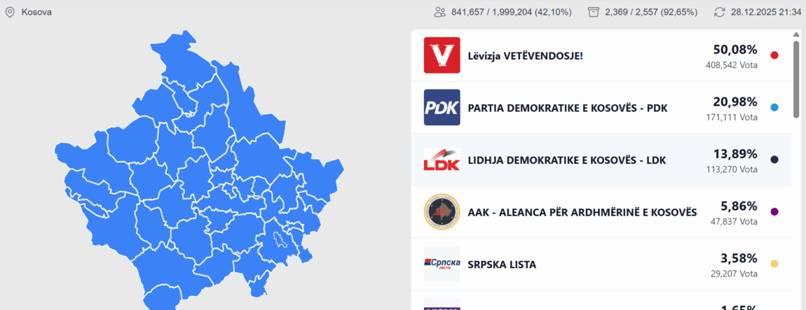 Lista Serbe, ndërkaq, ka fituar 3.44 për qind të votave.