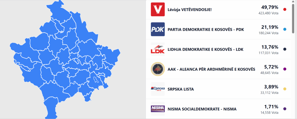 Nga Gazeta ‘Si’- Komisioni Qendror i Zgjedhjeve ka shpallur rezultatin paraprak të zgjedhjeve dhe Lëvizja Vetëvendosje është fituesja e tyre me 49.80 për qind të votave të fituara.