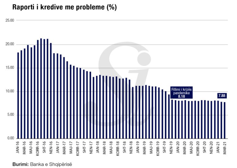 Të dhënat e bankës qendrore tregojnë se në fund të muajit prill raporti i kredive me probleme për individët ishte në nivelin 5.47%, ndërkohë që në mars të vitit të kaluar, në kohën e shpërthimit të pandemisë, kishte qenë 5.21%. Ky tregues shënoi rritjen më të ndjeshme në muajt shtator dhe tetor të vitit të kaluar.