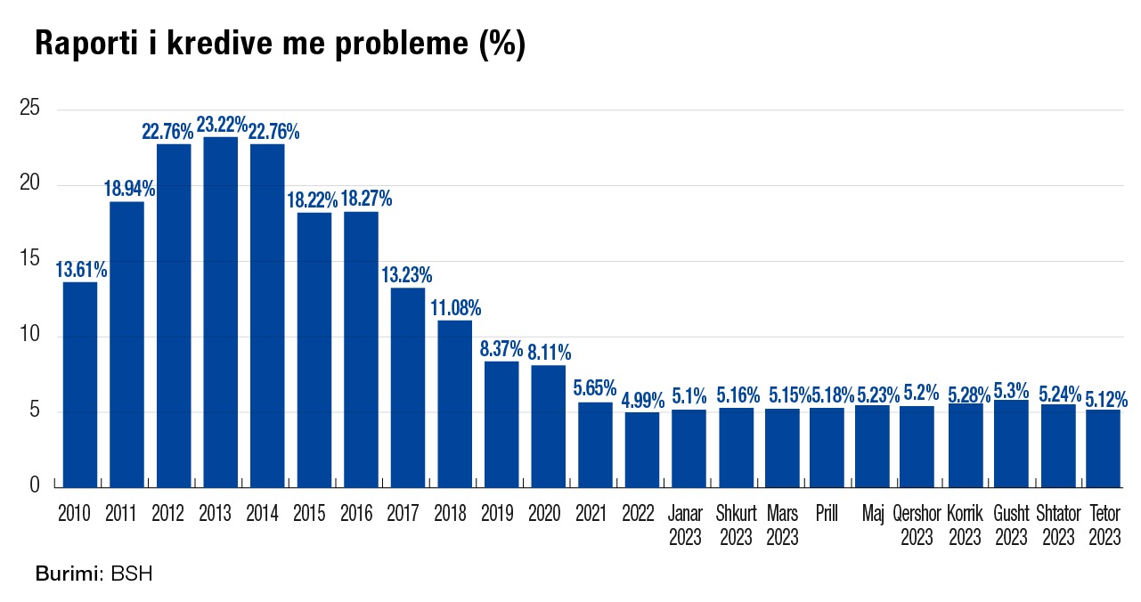 Kreditë me probleme ranë gjatë tetorit, por mbeten më shumë se një vit më parë