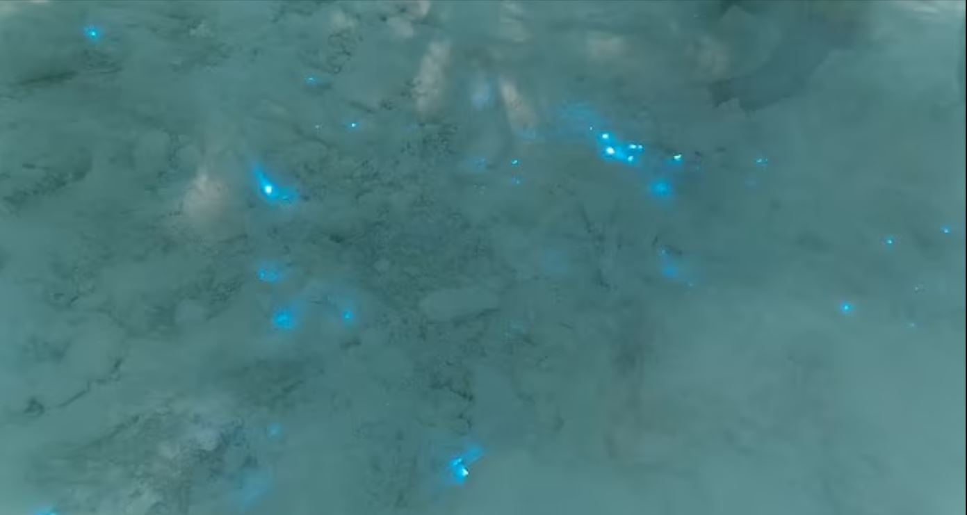 Në një fushë në brigjet e Detit të Bardhë, biologia Vera Emelianenko u nis për një shëtitje në një natë të ftohtë dhjetori. Me të ishin Mikhail Neretin, djali i biologut molekular te vendit dhe një çift qensh. Duke ecur përgjatë argjinaturave të akullta të zonës së baticës në erërat e forta të Arktikut, Neretin dalloi një ndriçim blu në një breg dëbore. Ndërsa shkonin për të hetuar, hapat e tyre krijuan vija blu eterike. “Ata ishin si dritat blu të Krishtlindjeve në dëborë,” thotë Emelianenko.