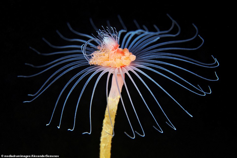 Një zhytës rus ka guxuar të sfidojë temperaturat nën zero për të kapur imazhe mahnitëse të disa “alienëve nënujorë” që jetojnë në një thellësi prej 152 metrash në Detin e Bardhë.