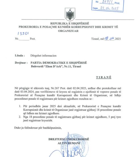 “Për periudhën janar 2025 deri aktualisht, në Prokurorinë e Posaçme kundër Korrupsionit dhe krimit të Organizuar janë regjistruar gjithsej 18 procedime penale që lidhen me krimet zgjedhore.