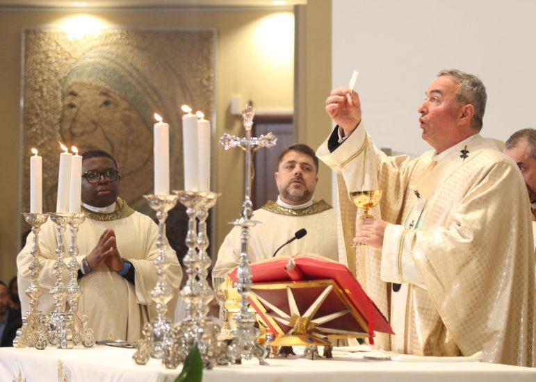 Të moshuar me rruzare në duar luten pa zë. Ka të rinj që ndjekin në heshtje veprimet e më të rriturve dhe i imitojnë në përpikmëri. Dëgjohen dhe zëra bebesh në sallë. Besimi i bashkon njerëzit. Dom Arjan Dodaj , Arqipeshkvi i dioqezës nis meshën dhe prej atij çasti, gjithçka bie në heshtje. Pritet ardhja e Jezusit.