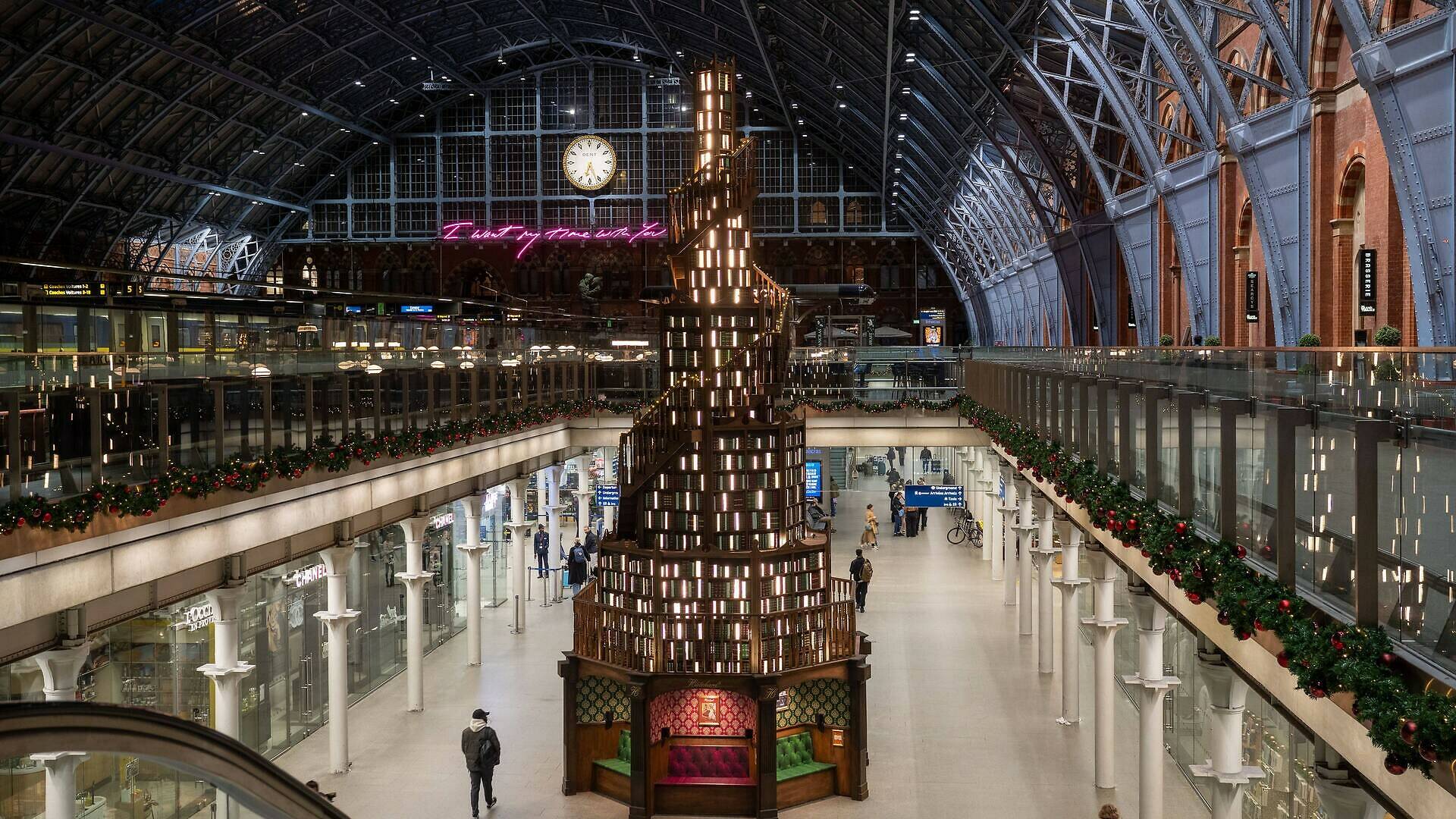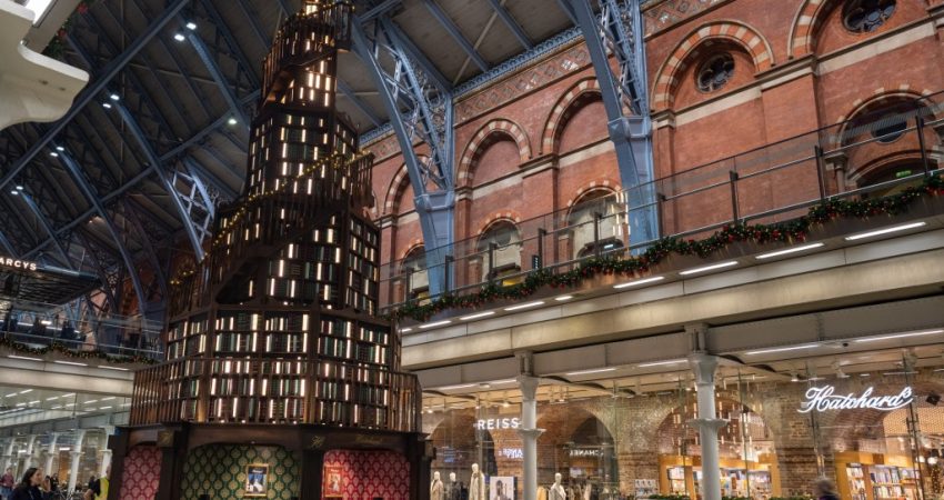 Pema e Krishtlindjes në St.Pancras është mbresëlënëse. Ky është stacioni më i madh hekurudhor në Londër dhe çdo vit pema ka një pamje ndryshe. Këtë vit, për pemën ekipi ka bashkëpunuar me Hatchard Books, librarinë më të vjetër të Britanisë.