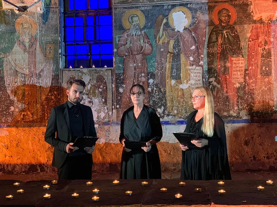 “Dialogët midis aktorëve dhe afreskeve, monologët e brendshëm, lutjet mes vargjesh… jam i gëzuar qe e realizuam thuajse si një film”, vijon Koroveshi.