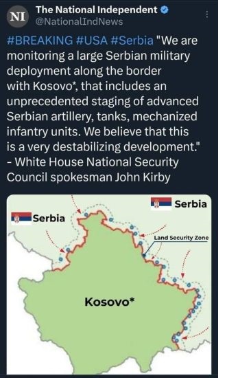 “I bëjmë thirrje Serbisë që t’i tërheqë ato forca nga kufiri”, tha zëdhënësi i Këshillit për Siguri Kombëtare të Shtëpisë së Bardhë, John Kirby.